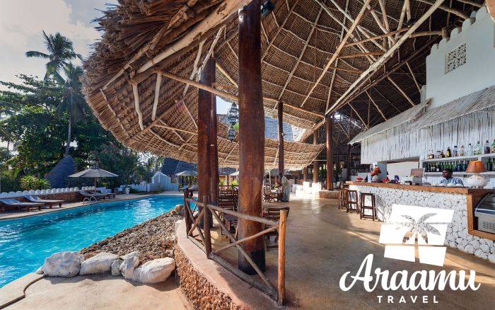 A hotel 87 szobás domboldalú komplexumában található TV-sarok, Wi-Fi a recepción (a szállás többi részében felár ellenében), fő étterem, Suli Suli a la carte seafood étterem (felár ellenében) , Nakupenda pizzéria (ingyenes), a tengerparton Ocean Reef Beach Grill (könnyű ebéd, ingyenes), bárok, butikok és medence, ahol a napágyak, napernyők és törölközők ingyenesek.